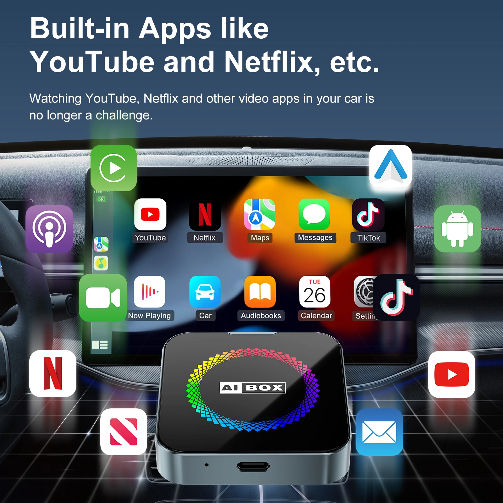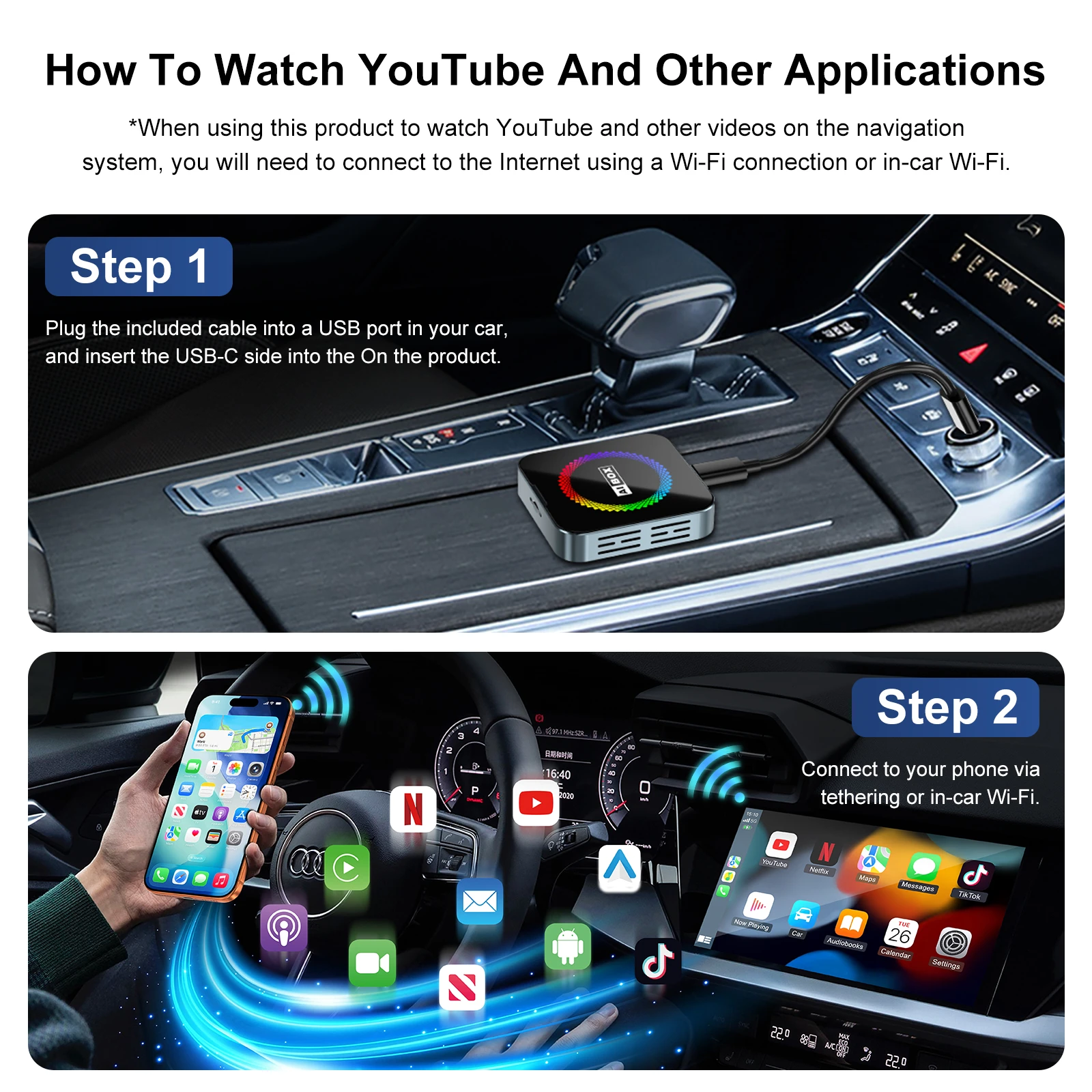 Upgraded performance to provide a truly lag-free experience! Stream YouTube, Netflix, and TikTok directly on your display screen. Enjoy wireless freedom with integrated Apple CarPlay and Android Auto. Voice commands and steering wheel controls included.