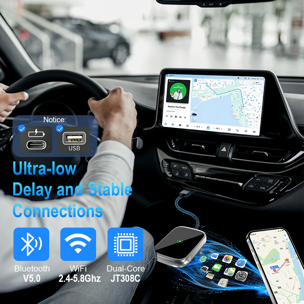 Seamless Wireless CarPlay and Android Auto - Enjoy CarPlay and Android Auto wirelesslywhile you drive making it easy to take calls, play music and navigate with ease.