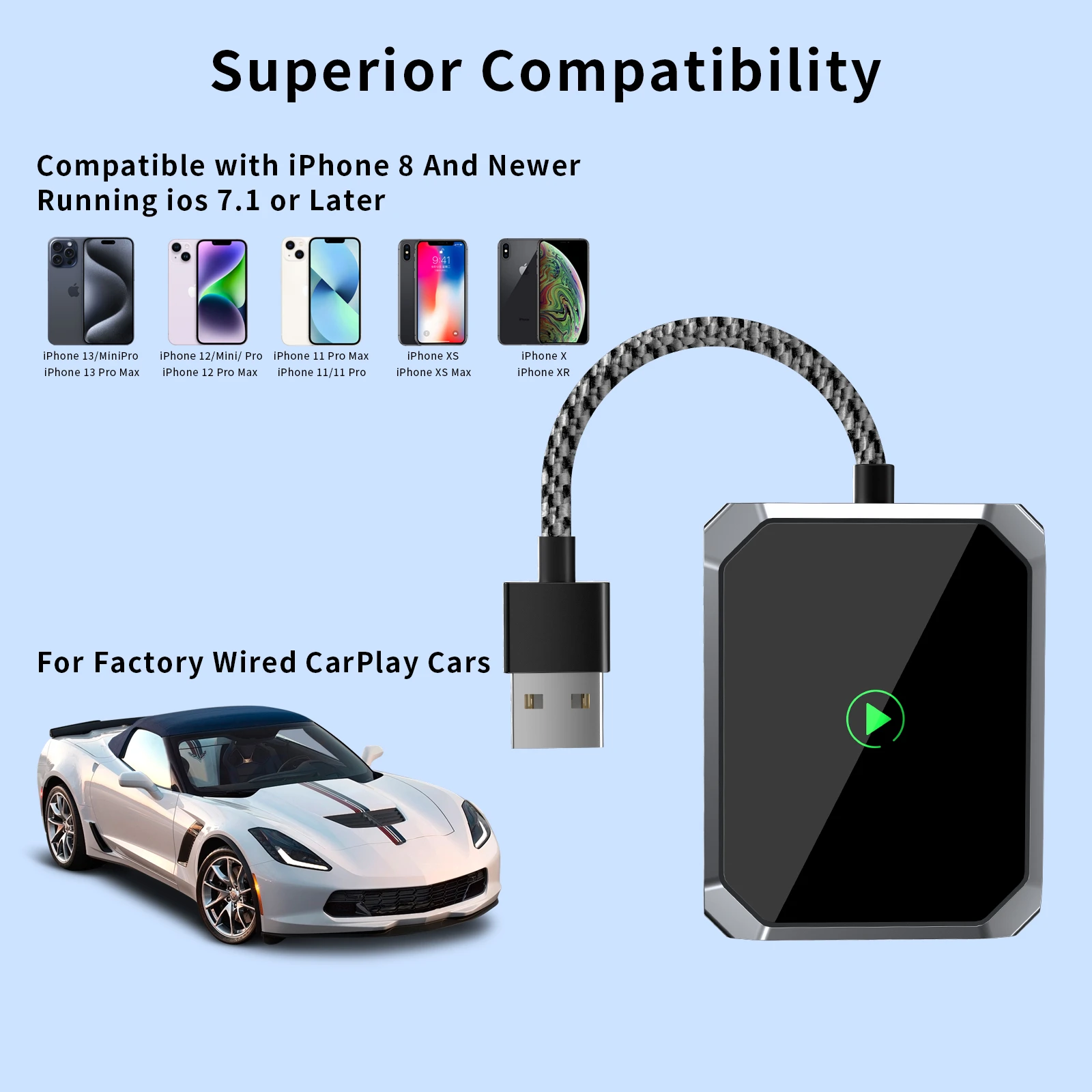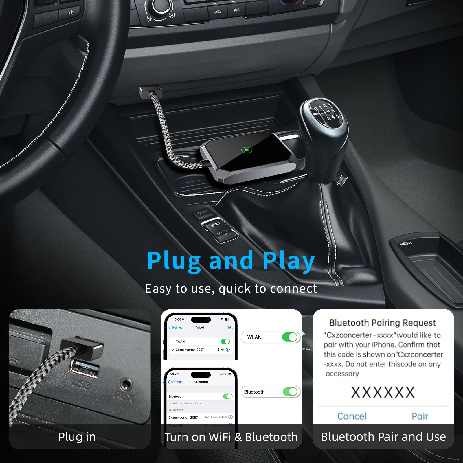 Overview:Convert the original car's wired CarPlay/Android auto to wireless CarPlay/Android auto Automatically connect after getting in the car