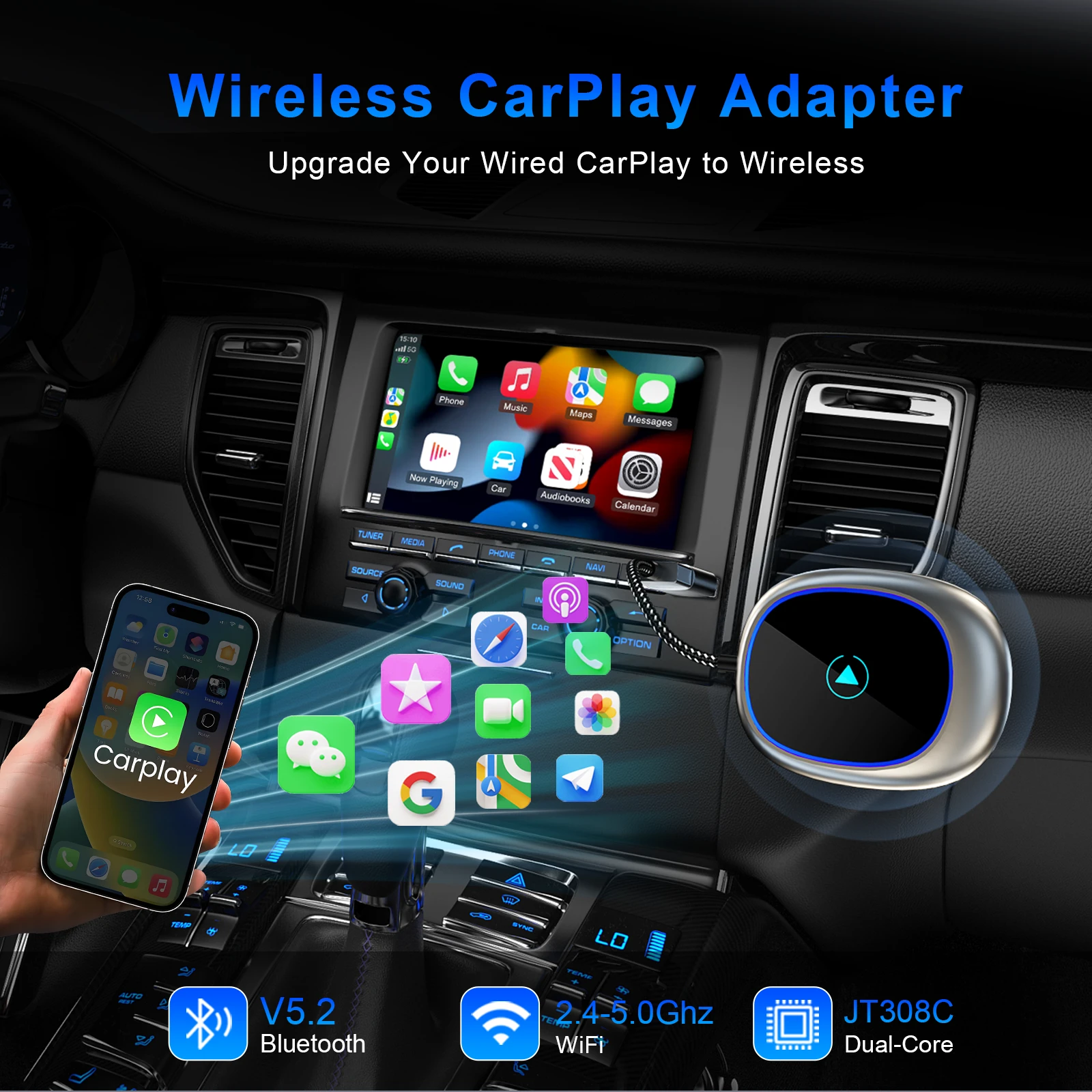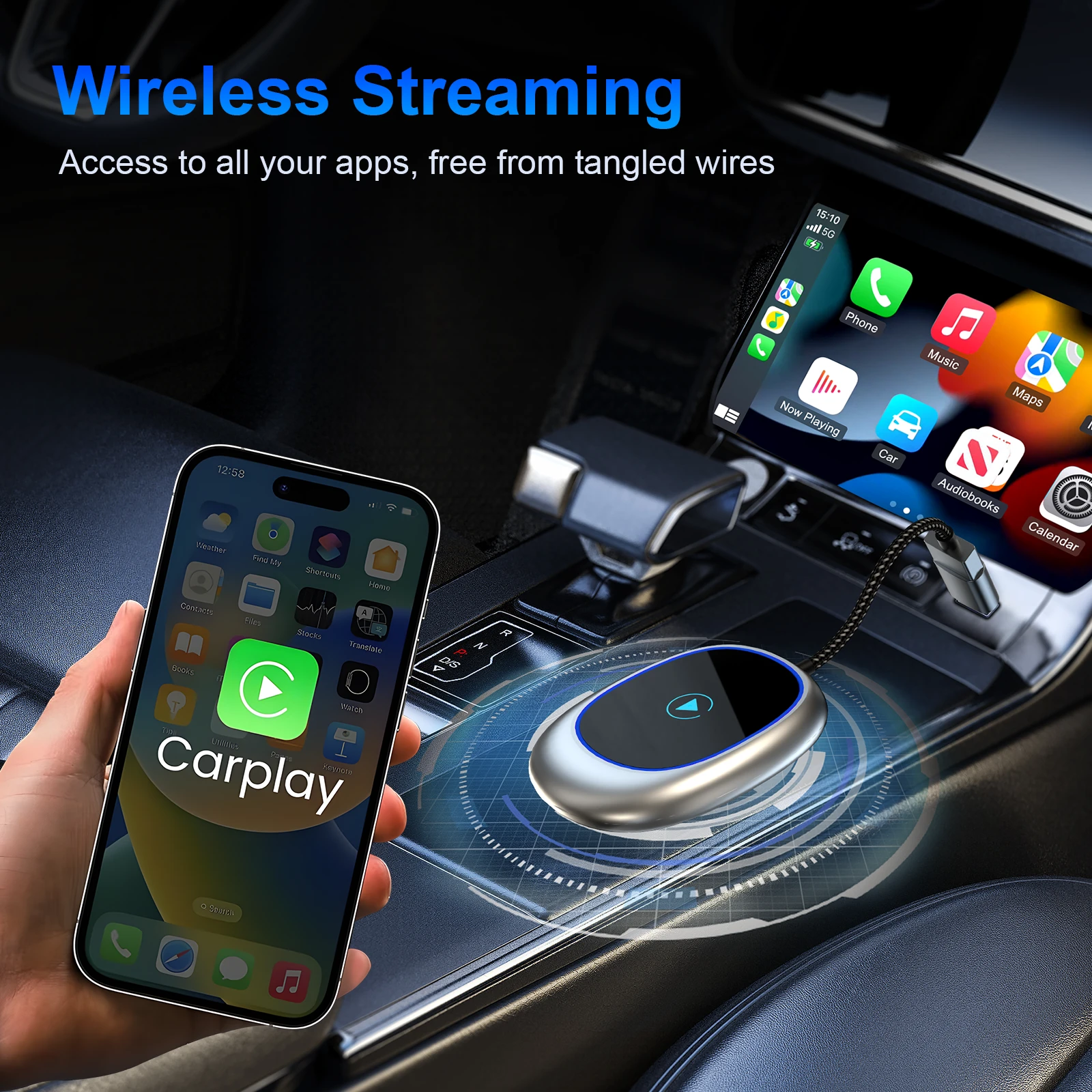 Overview:Convert the original car's wired CarPlay/Android auto to wireless CarPlay/Android auto Automatically connect after getting in the car