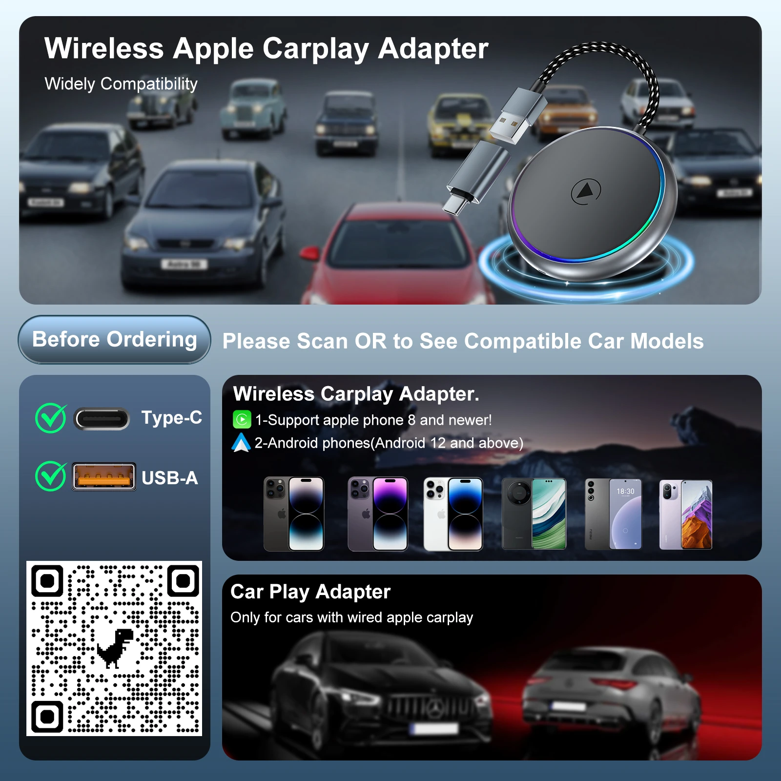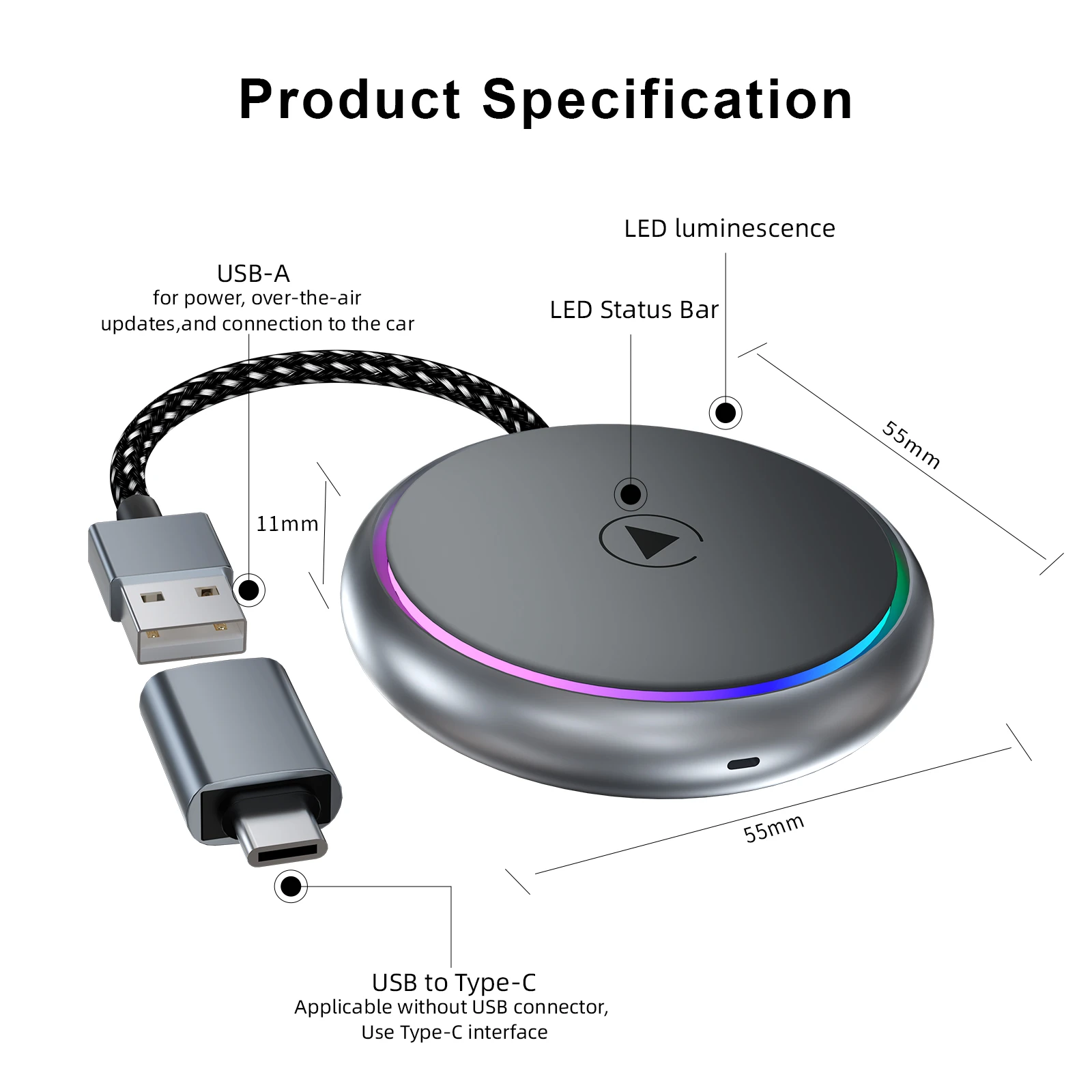 Wireless CarPlay & Android Auto Adapter –Colored Lights Series